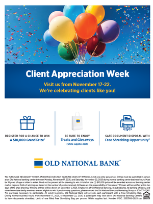 Come on out and end your day with the November Business Mixer hosted by Old National Bank. This is a great networking opportunity to build relationships with other members and businesses in the local area.